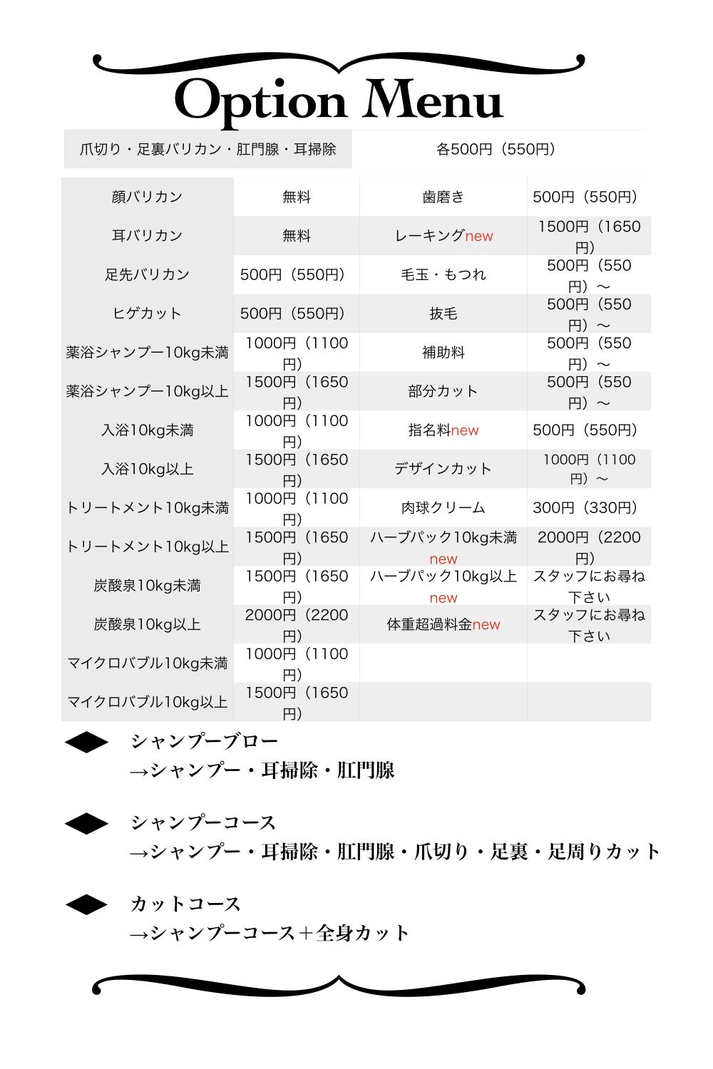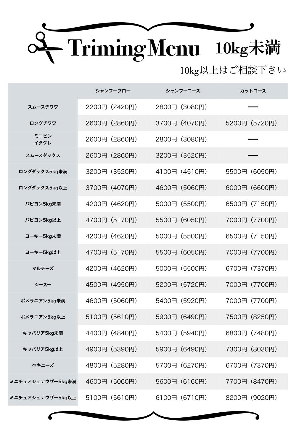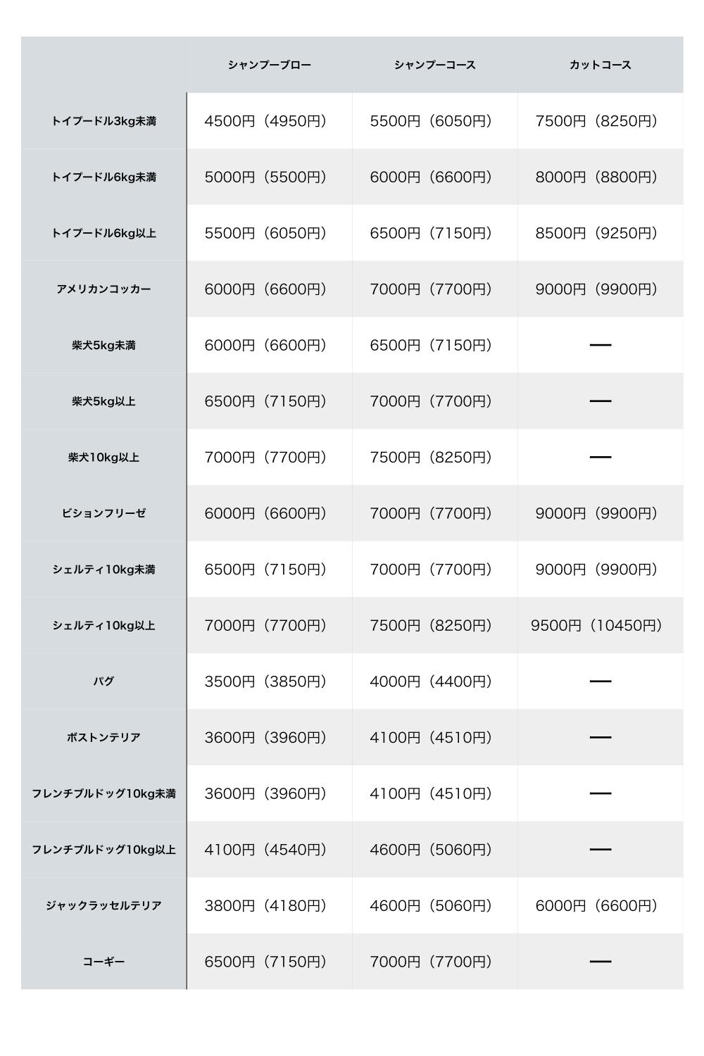 ※表記のない犬種の場合はスタッフまでご相談ください。